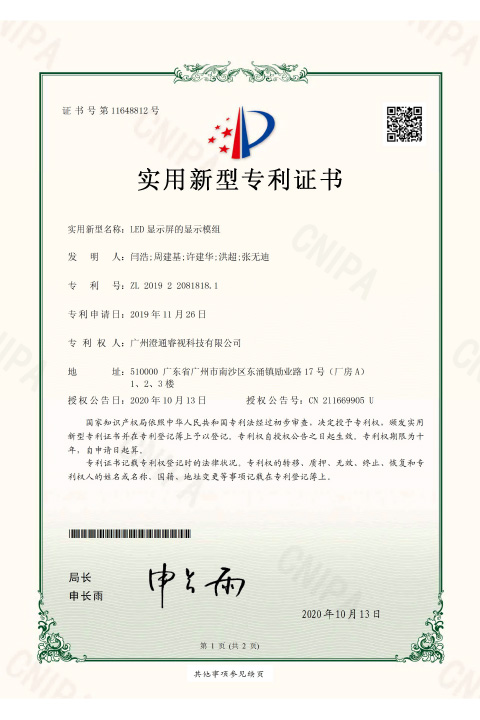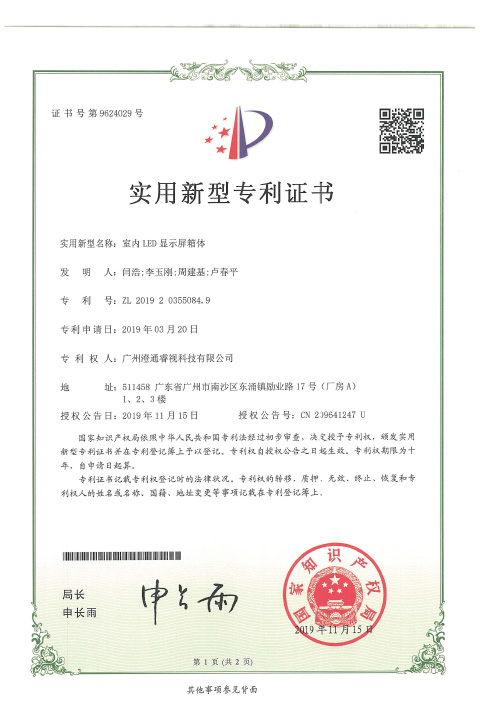睿視實用新型專利證書