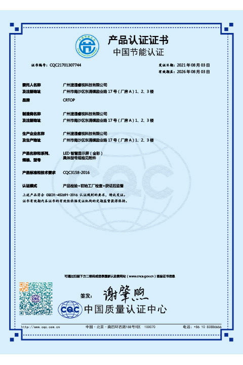 廣州澄通睿視科技有限公司FW服務認證中文證書